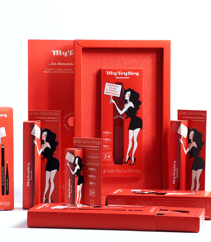 Set di astucci e cofanetti per una Linea provocante e appariscente. Cofanetto a camicia per il lancio del prodotto, con estrazione a slitta e interno sagomato per alloggiare i prodotti. Attraverso la fustellatura è possibile accarezzare il prodotto. Astucci lineari in cartoncino teso con stampa in quadricromia più pantone, impreziosito da UV serigrafico lucido a contrasto, per giochi di luci e matericità. Astucci con parete descrittiva “modello ciglione” per aumentare lo spazio dedicato alla narrazione del brand. Ogni packaging del set è un’esperienza sensoriale, un viaggio tra design e originalità che trasformano il prodotto in un vero oggetto del desiderio.